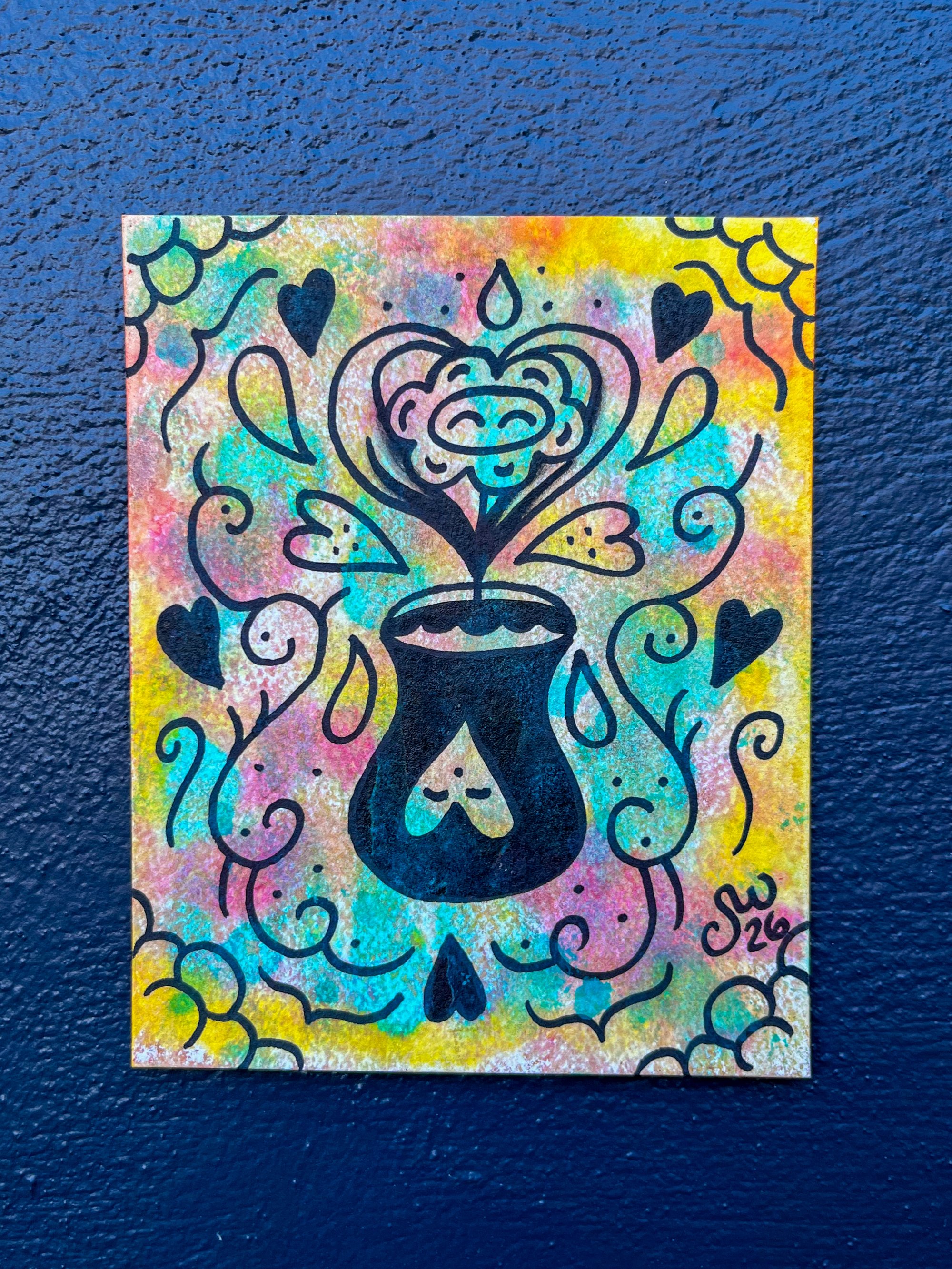 4x5” original painting on watercolor paper. Hand painted and one of a kind. Guaranteed to bring you joy on even the weirdest days.